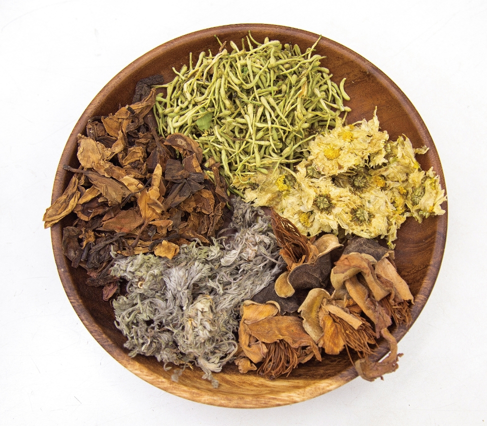 在新型冠状病毒肺炎爆发之初,梁振权的父亲身为一名老中医,凭藉经验开了一个防治流感茶的凉茶方子,得到很多街坊的信任,推出后很快就售出数千包。该方由芦根、金银花、菊花、大青叶、桑叶、板蓝根、甘草等13味中草药组成。其中金银花深具抑菌抗毒,抗炎解热,调节免疫之效,抑制流感病毒功效显着;菊花味苦入肝、味辛入肺,常用于风火上攻,热毒蕴结,与金银花同用,倍增清热解毒之效;板蓝根主治外感发热,瘟病初起。此外,桑叶清肺润燥,并以甘草调和诸药,整方清热解毒,口感轻清甘淡,不会过于苦寒,使其深具凉血解毒、清肺润燥、平衡养生之功效。