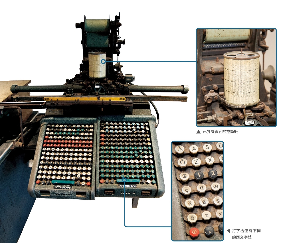 印务局于1964年购入,能自动排字及铸字,该机器要利用MONOTYPE打字机,配合已打有纸孔的卷筒纸张,能铸出预先排好的字句及字体。