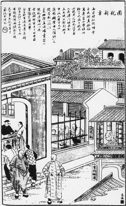 据澳门着名文化学者徐新「从《点石斋画报》看清末澳门」文中载述,光绪十四年(1888)十一月,《点石斋画报》卯集根据新闻刊登了一幅名为《圊税新章》的图画和跋文。《辞海》云:「圊,厕所,古代又称圊溷。」