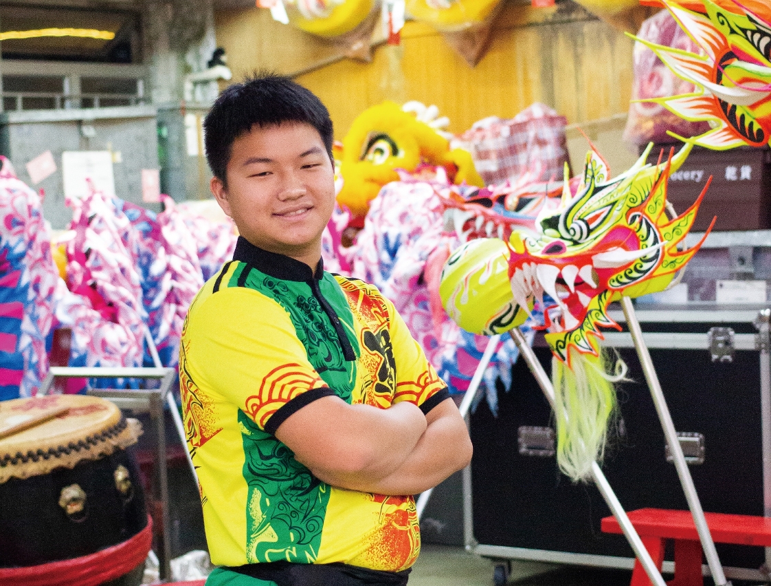 在青少队中负责龙头位置的黄泽朗,年仅14岁,在2020年全澳舞龙公开赛中,带领队员夺下青少队夜光龙的冠军。“我最初练习舞狮,龙狮不分家,两者关系密切,大约一年前开始尝试舞龙。在学习舞龙的过程中,明白到个人主义不可取,只有团结才能让部份力量于整体中得以放大。”