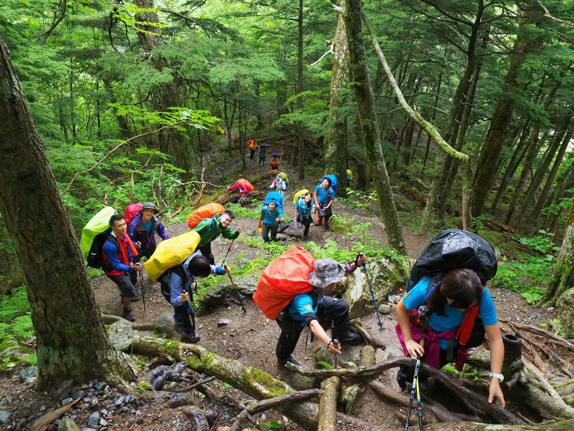 若是超过两天的行程,便要在山上扎营过夜,就需要用到50L以上的大背囊,以及露营帐篷、便携的御寒羽绒服、可防止头部失温或头发被打湿的头巾、吹气枕头、睡袋、睡垫、餐具、炊具,还有依天数而定的易熟粮食、至少2公升的水等物资。另外,山友们一般会准备一个轻便的「攻顶包」在登顶阶段使用,「攻顶包」内只装必需物品,而主背包就暂时放在营地。