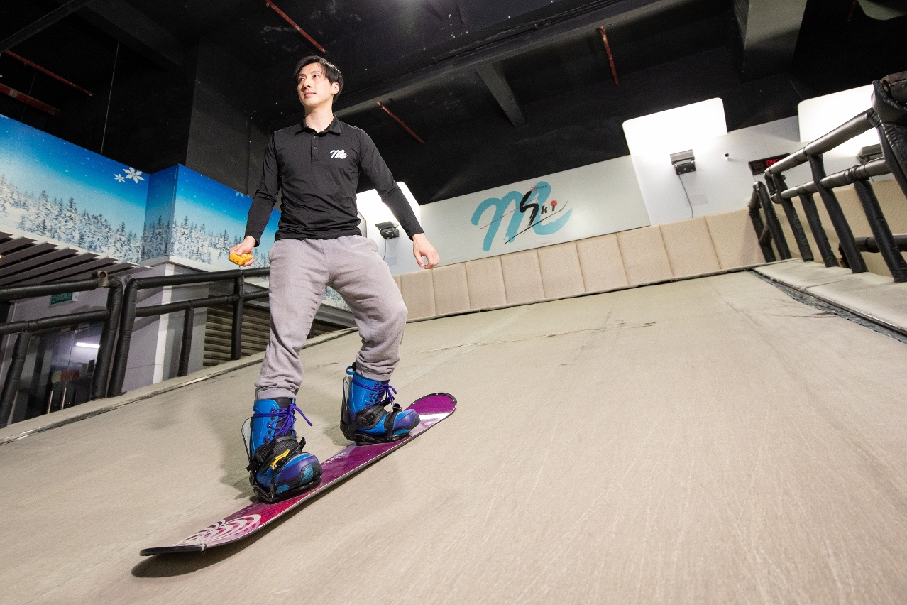 模拟滑雪场没有真正的冰雪,而是在一个倾斜的台子上,铺设一幅模拟雪毯,学员穿戴好装备,在教练的专业指导下,便可在不断滑动的雪毯上模拟滑雪动作。不少人认为,模拟滑雪场只在雪毯上滑行,没有真雪,难以感受到滑雪的乐趣,澳门滑雪会教练刘孟麟解释:「在模拟滑雪场学习的要求,其实较在雪地学习还要高,原因是滑雪者的动作,要做得更为精准才能滑行。」