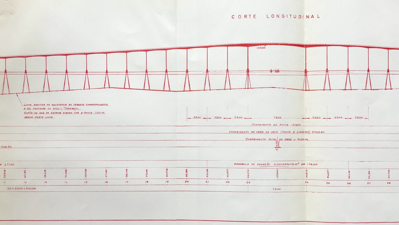 大桥全长约3,450米,包括填土引桥、架空引桥、大桥身等部份。整个大桥身采用钢筋混凝土不间断的结构,其中孔距73米连同两侧25米的一节,支撑的肱杆臂架采用预应力混凝土制成。大桥身的斜度为百分之五,最高点在涨潮时距离水面约为27至34米,以预留船只的通行空间,当中73米与两侧25米三段的拱形为抛物线,相等于1,700米半径的曲线形。