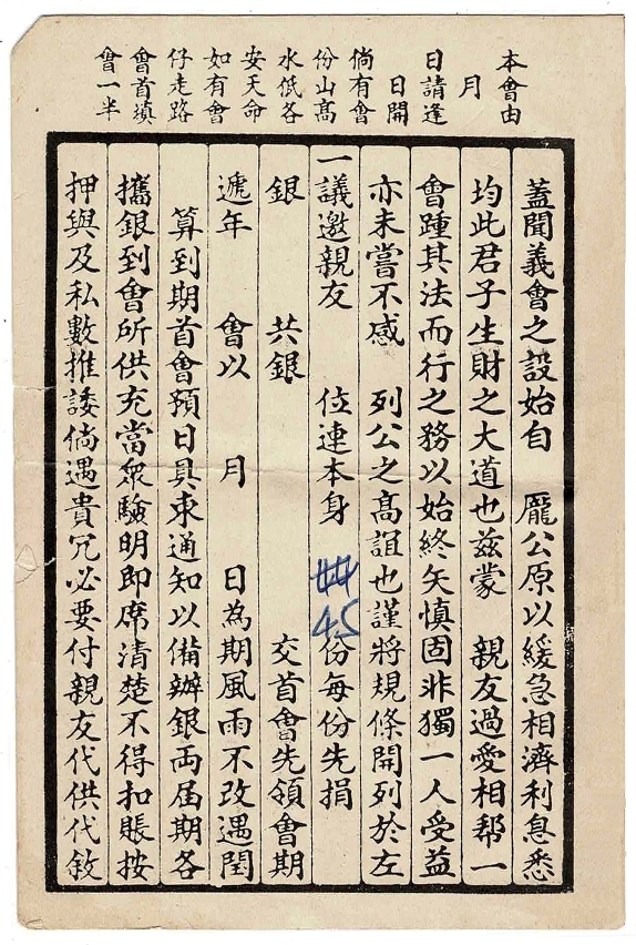 再有一种合会曾流行相当年月,那就是以筹资为目的之「义会」(或称「银会」、「标会」)。