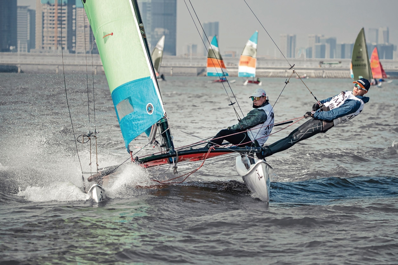 与黎荣发组队参加今次国际帆船赛的陆中兴,有丰富的水上运动经验。他说,帆船运动员在海上作赛,除要对帆船、操控技术和赛制有充分瞭解,还得掌握瞬息万变的海洋及天气情况,不断练习提升技巧。以今次赛事为例,他们曾于赛道的第六位,一度跃升至第一位。「当时,我们预判到会有一股阵风吹到,于是立即调整航线角度,成功于弯道超前。」陆中兴解释,帆船运动很考验运动员的经验和反应能力,要随时感受风的变化,并即时作出调整去应对,还须在短时间和队友沟通,互相配合,很讲求双方的默契。