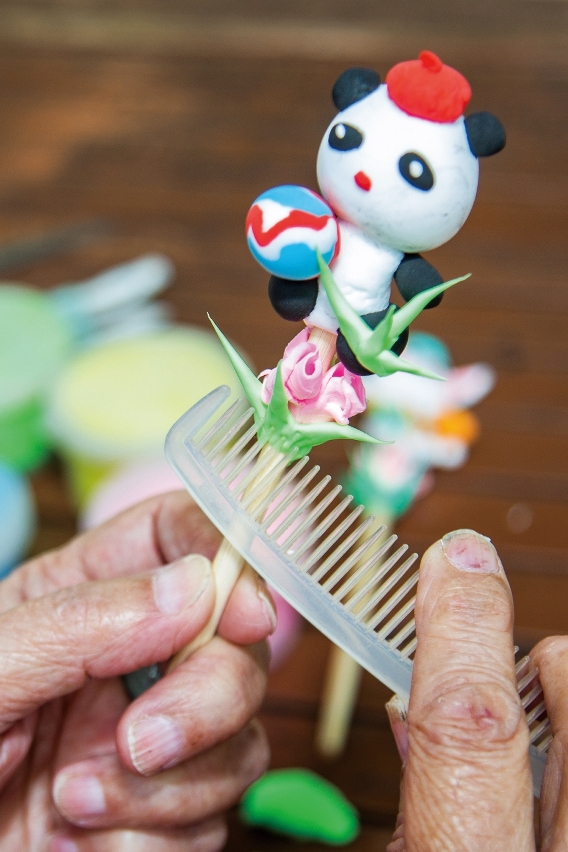 陈斌师傅说,面粉公仔制作方便,没有特定的工具,以往的手艺人都会从生活中就地取材,各有偏好,制作手法也不尽相同。而现代的面塑工具,则能在网上轻而易举地成套购买。「我喜爱用梳子和剪刀这些常见工具,梳子便于刻造出理想的压纹,剪刀则可剪出须状或沟状的造型。」他指,面塑看似简单,其实很讲究色调混搭和娴熟程度,简单的小鸟造型,也要花8至10分钟才能完成,而造型较为复杂的,或需花上数十分钟。