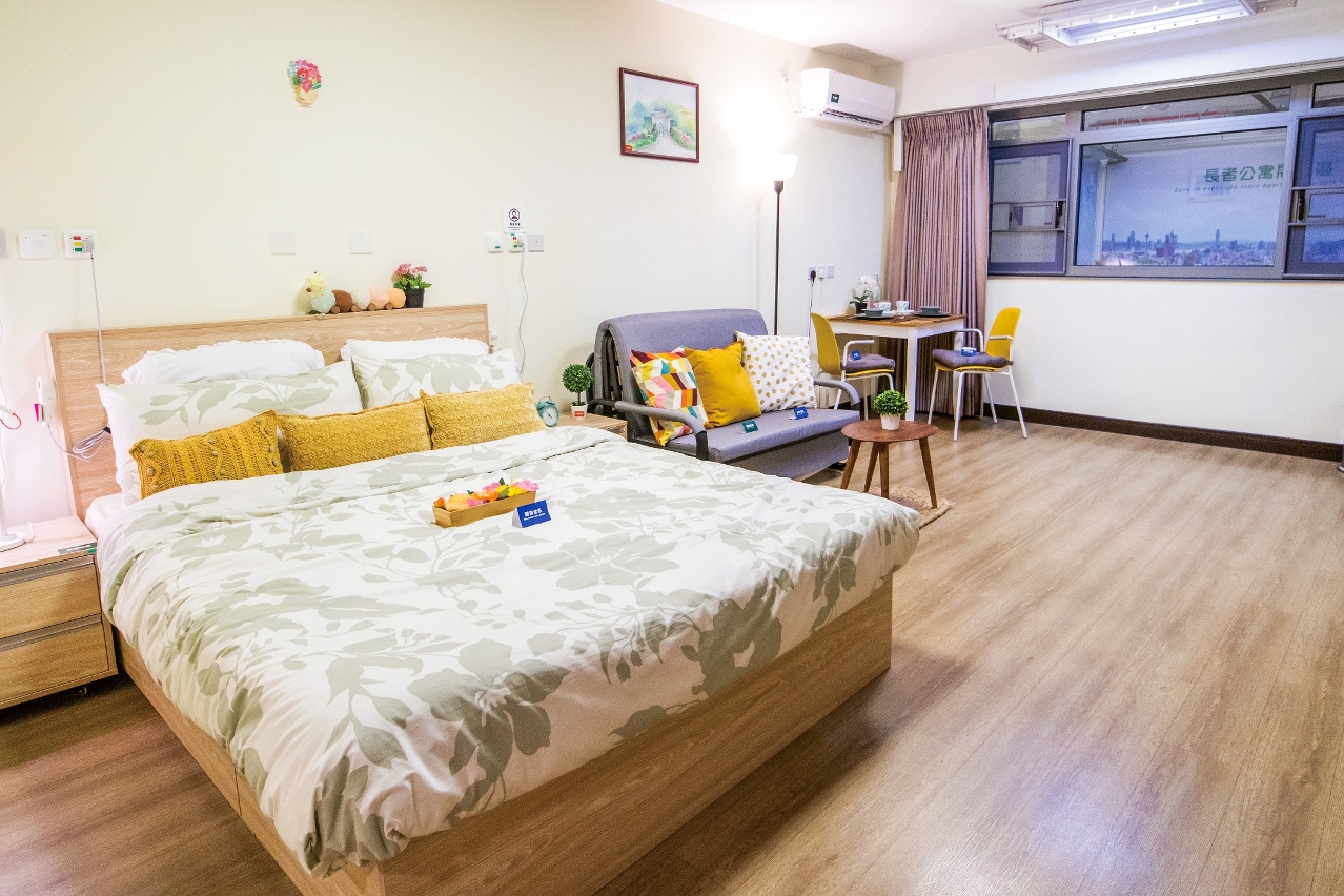 特区政府于2020年4月公布长者公寓先导计划方案,是五阶梯房屋政策当中一环,重点回应居住在旧区的长者的需要,预计今年底完成建造工程,明年投入服务,其目的为优先照顾现时居住于唐楼单位及有经济能力的长者,希望解决他们上落楼梯的困难,便利出行,改善居住环境和生活质素。为配合长者的日常生活需要及家居安全,长者公寓引入乐龄科技设备及无障碍设计,如防火、防水的监测设备和紧急支援设备。无障碍设计方面,单位内设置电动升降式晾衣架、下拉式挂衣杆,亦有足够空间让轮椅能360度转动。