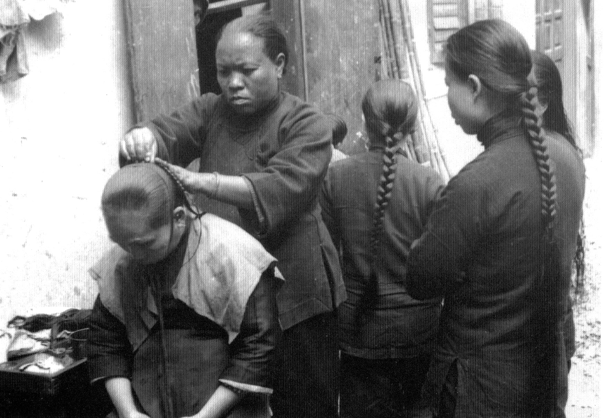 在此同时,还有不少传统女性,仍然将头发梳成长可及腰的「大松辫」,或将长发盘结于脑后为髻。她们要理发时,不是光顾理发店,而是坊间所称的「梳头婆」。