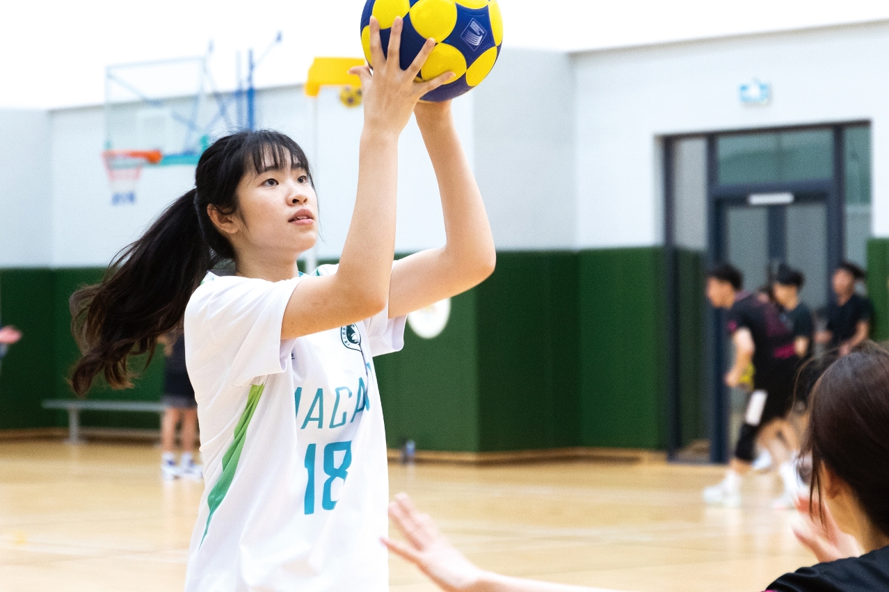 凌嘉禧于初三首次接触合球后,便被深深吸引,打了6年合球,已是队内的实力女将。「在外出比赛时,合球队的差距一般是体现在女队员身上,所以多练习是非常必要。」作为代表队女将之一,为了提高球队水平,她一有空便自主训练,保持良好的身体质素,力求进步。