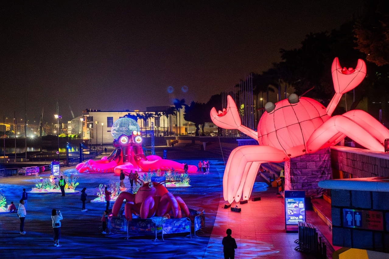 以「时空的共融」为主题的旗舰装置、艺术装置、灯饰装置、互动装置及光雕表演等,营造出一场穿越时空的光影盛宴,市民及旅客可分别前往北区、下环区、南湾区、新口岸新填海区、氹仔区及路环区,感受一系列沉浸式夜间休闲体验。活动期间,逢周六晚上8时至9时,6区的特定地点会设置不同的快闪活动,增加现场欢乐气氛。