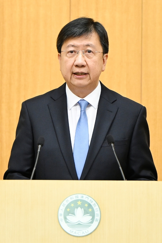 他指出,新起点新作为,他将带领新一届特别行政区政府,在中央政府的大力支持下,团结社会各界,勠力同心、守正创新,全面准确、坚定不移贯彻「一国两制」方针,坚定维护宪法和澳门基本法确立的特别行政区宪制秩序,坚决维护国家主权、安全、发展利益,坚定落实「爱国者治澳」原则,持续加强爱国主义教育,支持爱国爱澳力量不断发展壮大,不断健全特别行政区维护国家安全的法律制度和执行机制。