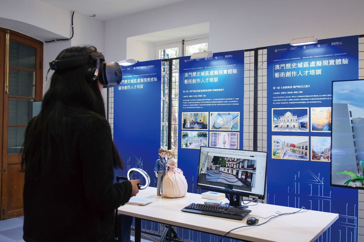 去年,王伯勋带领研究团队推出“澳门历史城区虚拟现实体验艺术创作人才培训”,成为澳城大首个入选国家艺术基金艺术人才培训项目。该项目于2024年7月正式营运,8月即发表初期成果,并于2025年3月顺利结项,举行终期成果展。王伯勋介绍,该项目以“艺术文化重塑澳门形象、虚拟现实赋能永续发展”为核心理念,致力于培育具有全球视野和创新能力的艺术创作人才。他指出,“项目透过科技与艺术的深度融合,集成跨学科优势资源,以创作为载体,实现科技赋能艺术,进一步提升艺术创作的文化内涵与社会价值。”