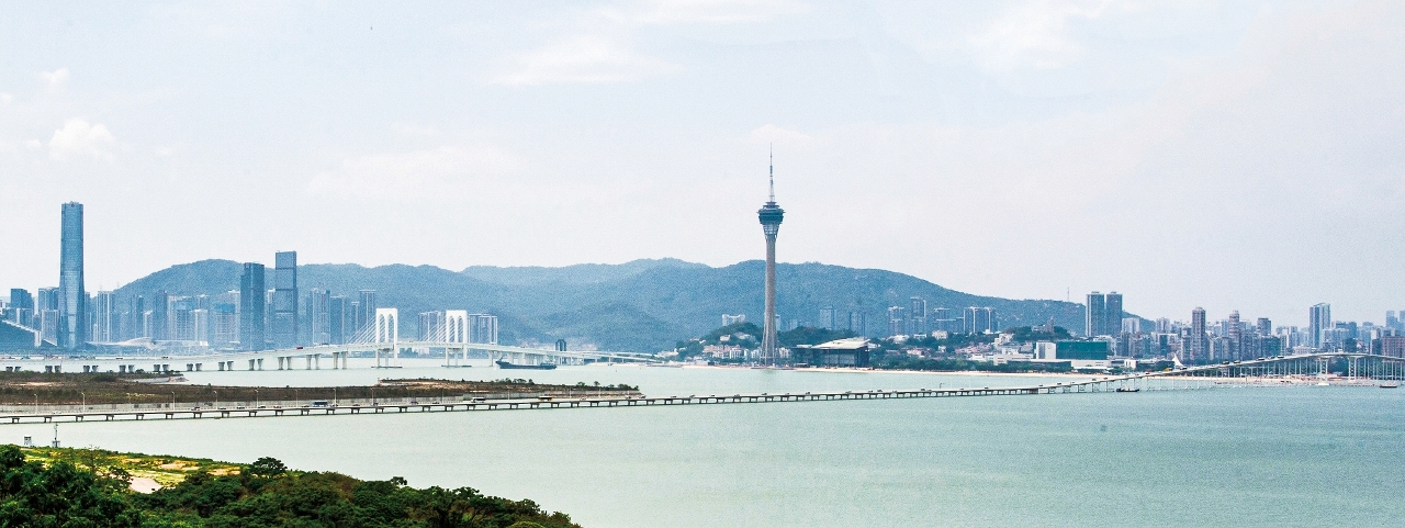 站在澳门城市大学(下称“澳城大”)行政楼天台,可远眺澳门半岛的山景与特色建筑。在阳光照映下,连接凼仔与澳门半岛的白色大桥,被海面反射的日光映照得熠熠生辉,令人陶醉。澳城大创新设计学院执行副院长王伯勋介绍,团队从长期累积的城市形象素材中寻找灵感,并在查阅《澳门特别行政区城市总体规划(2020–2040)》时,发现规划中特别强调须维护和展现澳门“山海城”的城市景观。“我们认为这一词最能贴切诠释澳门风貌,因此确立为创作主题,同时结合过往研究经验,深化对澳门的观察。”
