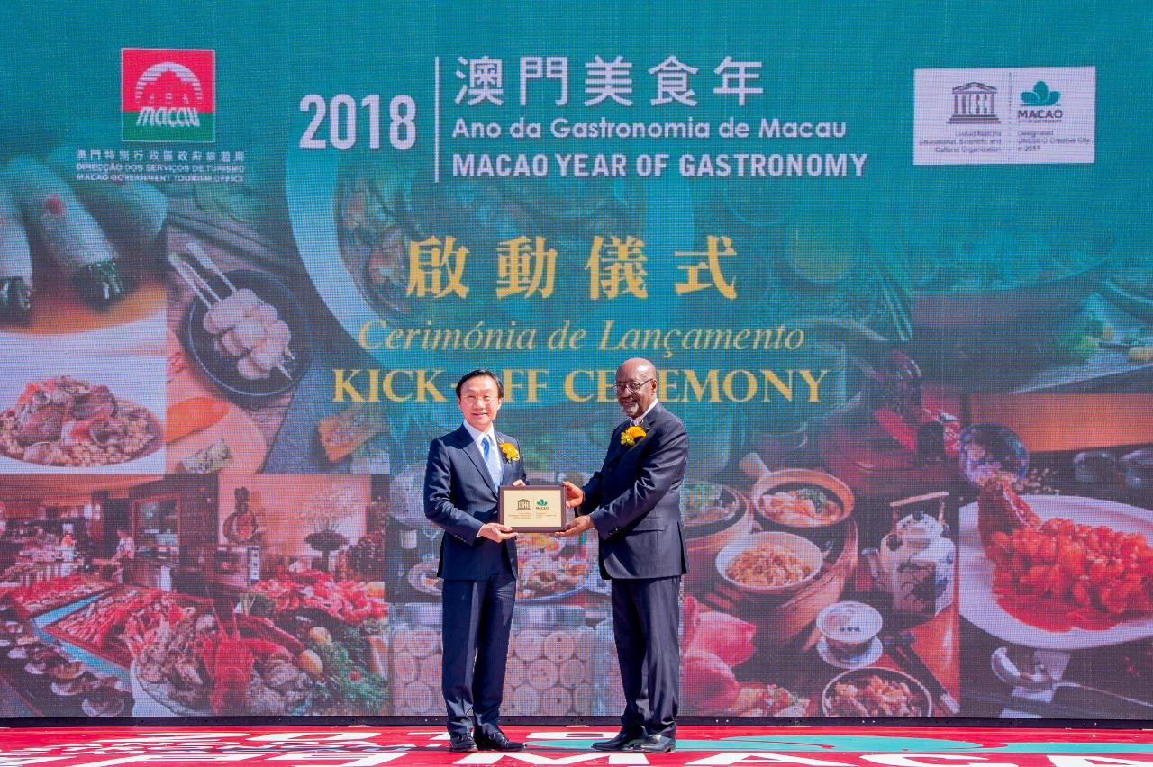 "2018澳门美食年"正式启动,澳门特别行政区政府社会文化司司长谭俊荣与联合国教科文组织副总干事格塔丘•恩吉达及众嘉宾今(17日)主持启动仪式,为美食年的连串推广及庆祝活动拉开序幕,并按序推行四年建设"美食之都"的工作计划,让城市以美食作动力促进本地文化保育,向世界展现澳门"美食之都"的魅力和创意,全面迈向可持续发展,扩大国际合作。