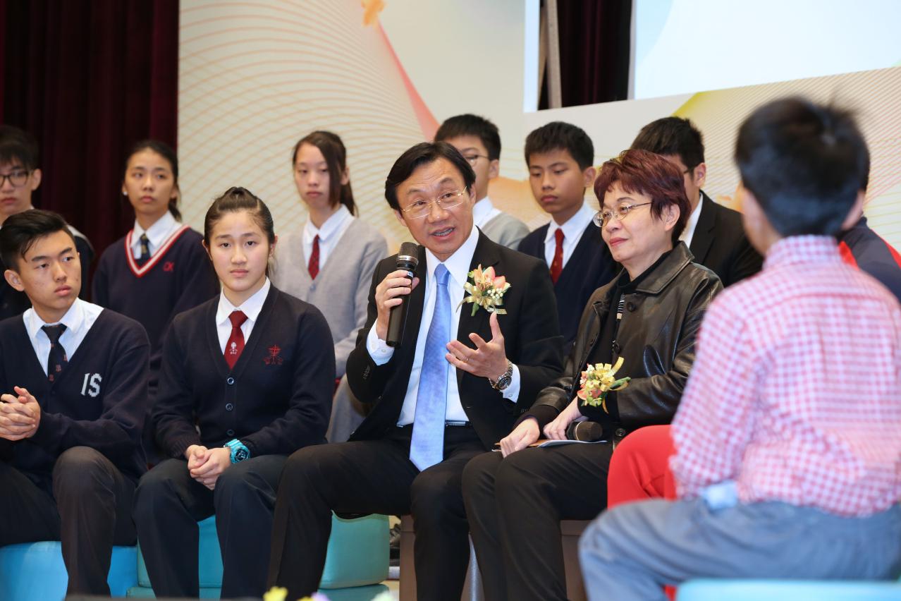 嘉许礼上,谭俊荣向4名获个人奖的学生及6个获奖的代表队颁授“优秀表现学生”荣誉,并在梁励陪同下与获嘉许的学生座谈交流,勉励学生努力学习,养成健康生活习惯,强健体魄,追求全面发展。谭俊荣表示,特区政府重视培养青少年科技和信息知识,将加大资源投入支持学校,并继续推动学生多元发展,全力为青少年的成长丶成才、成功创造更好条件。此外,嘉许礼还播放了获嘉许学生及团队代表的获奖感言短片。