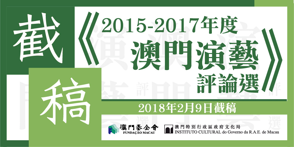 为总结过去三年的演艺评论创作成果及保存资料,推动澳门演艺事业发展,澳门基金会、文化局计划联合出版《2015-2017年度澳门演艺评论选》。自本年一月起公开征集二零一五至二零一七年发表的澳门演艺评论文章,并于二月九日(星期五)截止递交作品。