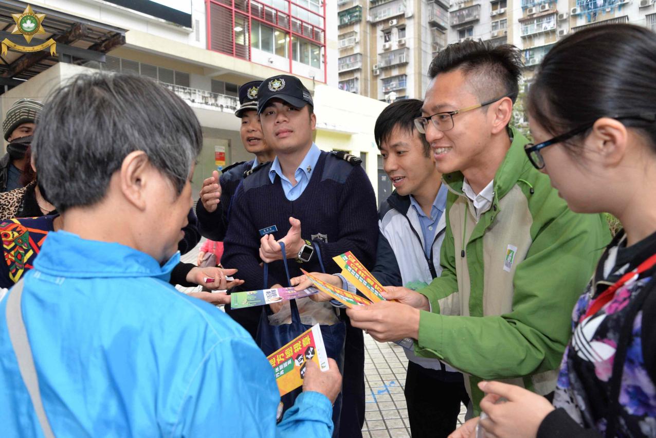 于4月16日上午,治安警察局、民政总署及环境保护局在佑汉公园一带,进行联合普法宣传活动,并邀请多名街坊一同探讨优化社区环境方案。
