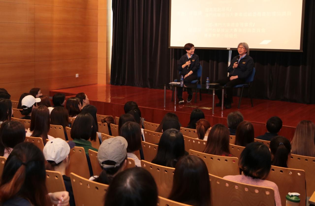 是次活动主题为认识澳门格兰披治大赛车,主讲嘉宾在分享会上介绍澳门格兰披治大赛车的历史发展及相关筹备工作等,让学生们体会到澳门格兰披治大赛车是属于澳门人的体育盛事,同时亦是带动澳门旅游及经济发展的知名品牌。学生们对于分享会的内容深感兴趣,并踊跃进行发问,现场气氛热烈。