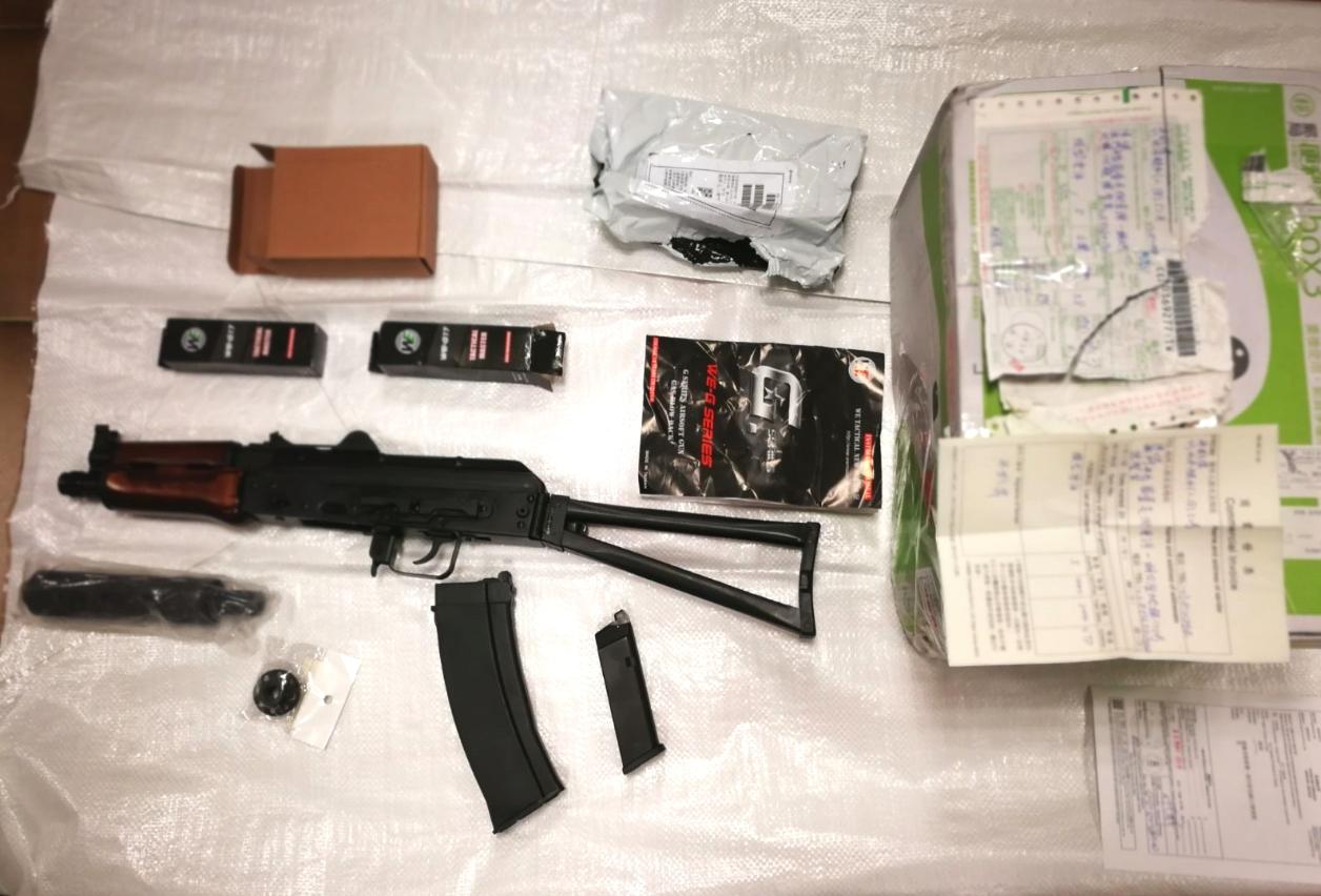 本月8日,澳门海关协助邮电局,透过X光机检查一个来自台湾经澳门国际机场进口之邮包,发现内有疑似枪械物品,随即加派关员驻守邮电局,待物主提取邮包时进行检查。同日,一名男子到邮电局提取上述邮包,经检查证实为一支气体操作的金属长枪,该男子声称枪械是在网上订购,由台湾邮寄回澳,约值澳门币二千元,作为收藏之用。经鉴定,有关枪械为一支仿真气体金属长枪,由于有关货物进口本澳须具备有权限当局发出之进口准照,当事人未具备报关文件而输入上述物品,属违反第7/2003号法律之规定,一经定罪,可被科处澳门币5千元至10万元的罚款,而有关物品将被充公。