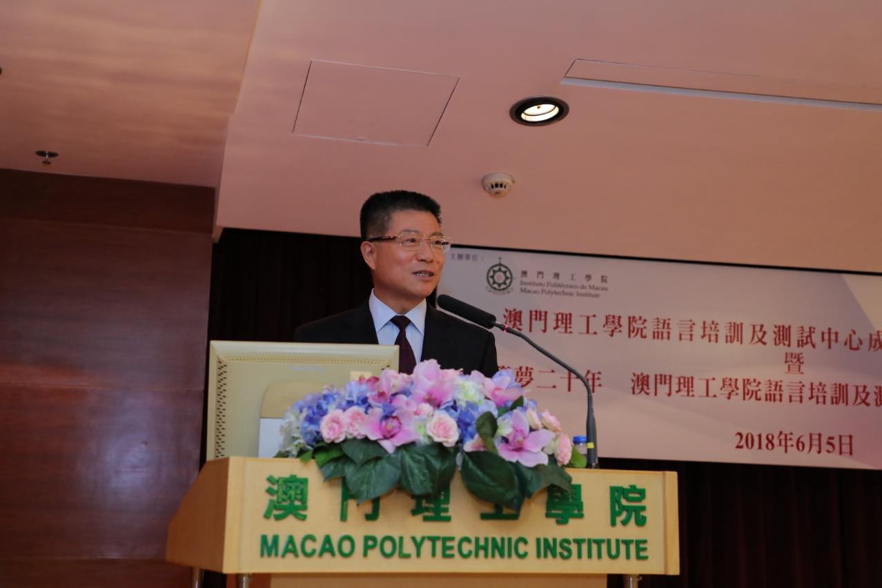 “澳门理工学院语言培训及测试中心成立二十周年座谈会暨《筑梦二十年 澳门理工学院语言培训及测试中心特刊》发行仪式”于6月5日早上10时30在理工学院汇智楼一楼2号演讲厅举行,由国家教育部语言文字应用研究所张世平所长、中央人民政府驻澳门特别行政区联络办公室教育与青年工作部洪波处长、澳门理工学院李向玉院长、高等教育辅助办公室曾冠雄副主任、教育暨青年局局长代表陈旭伟厅长等嘉宾主礼。国家教育部语言文字应用研究所张世平所长表示,澳门回归祖国以来,与内地合作日趋频密,学习和掌握国家通用语言日益成为澳门政府与市民共同的目标和努力方向。20年来,国家语委普通话与文字应用培训测试中心为澳门培养了国家级普通话水准测试员23名,而澳门参加普通话水准测试的人数20年平稳增长,至2017年底,已达约3000人次。国家语委普通话与文字应用培训测试中心将继续秉承“服务澳门市民和社会”的理念,与澳门普通话测试中心一起,再创普通话新的辉煌。