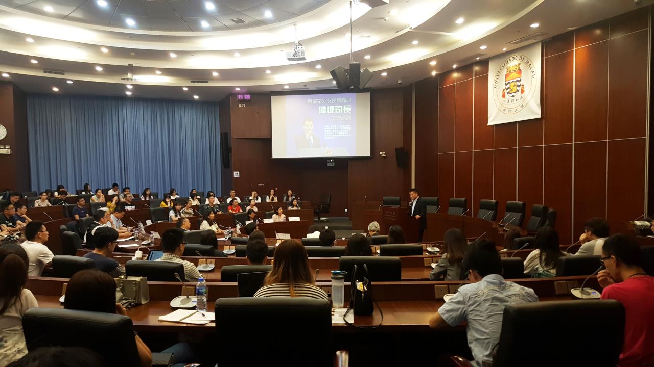 国家外交部新闻司司长兼外交部发言人陆慷率团到访澳门大学,并应邀参加交流座谈,分享外交部发布工作的情况,以及剖析目前中国外交中的重要议题。座谈吸引了众多澳大师生参与,全场座无虚席。