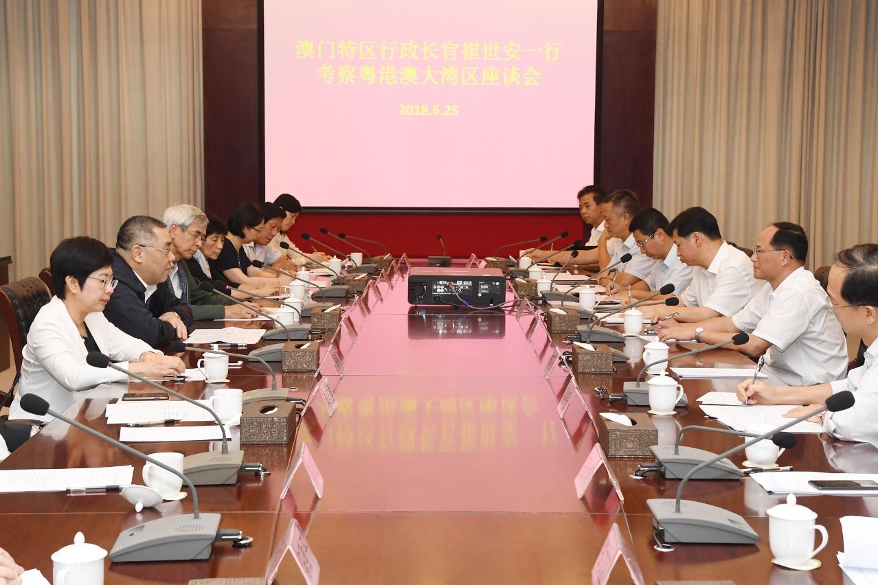 行政长官崔世安一行今(25)日下午与江门市委书记林应武等举行座谈会。崔世安表示,随着粤港澳大湾区规划即将出台,希望藉着澳门和江门共同参与大湾区建设,进一步深化两地间的合作。