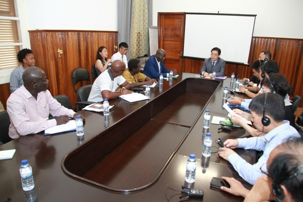 访问期间,丁副秘书长分别拜会了几比计划及地区一体化国务秘书Dr. Humilhano Alves Cardoso、经济财政部国务秘书Dr. Suleimane Seidi、中国驻几内亚比绍使馆临时代办田玉震、渔业部部长Dra. Maria Adiatu Djalo Nandigna及农林畜牧部部长Dr. Nicolau dos Santos,代表团还与几比工商界代表进行了座谈。