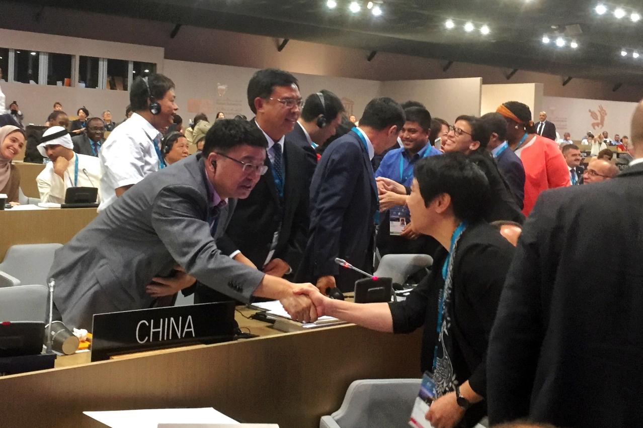 澳门特区政府文化局代表见证了我国上述项目成功申遗的整个历程,并第一时间向代表团表示祝贺,与代表团共同分享这份成功的喜悦。