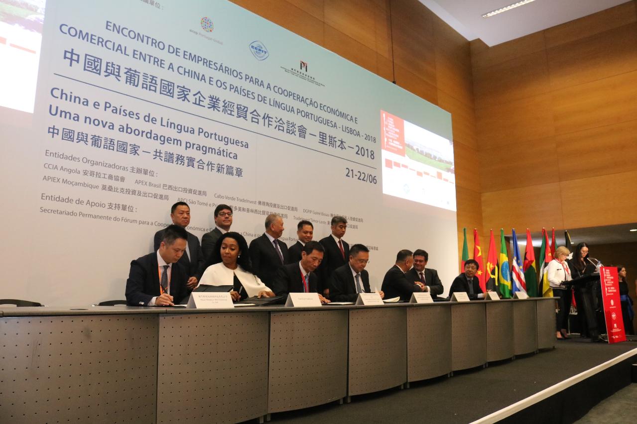 “中国与葡语国家企业经贸合作洽谈会-里斯本-2018”于当地时间6月21至22日顺利举行,期间签署了24份协议和备忘录,当中有21份签约涉及澳门政府及企业。与葡语国家达成合作的企业表示此行收获丰富,并认同澳门中葡平台明确定位优势,成功助力企业“走出去”与葡语国家达成合作。