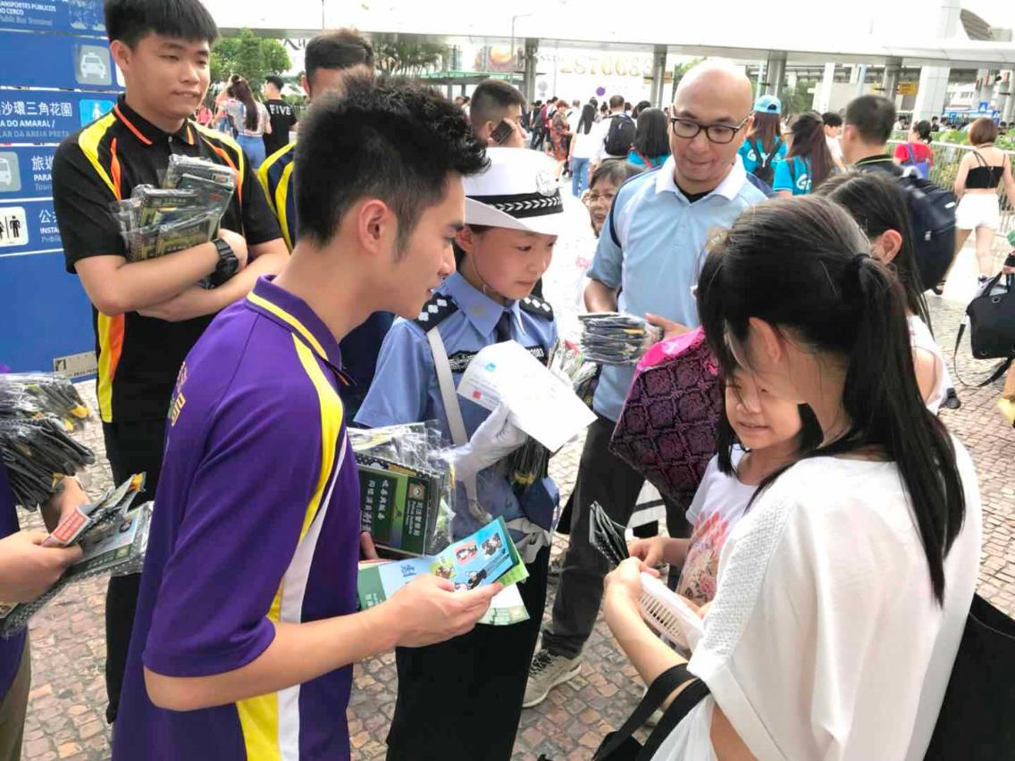 近年青少年吸毒的个案偶有发生,且呈现隐蔽化趋势,为防止青少年于暑假期间北上滥药,司法警察局组织“灭罪小先锋种子计划”及“社区安全青年领袖计划”学员,联同山东省潍坊市少年交警先锋队代表团的学员到关闸口岸一带进行“预防青少年北上滥药”防罪宣传,冀加强青少年的防范意识,免受毒品侵害。
