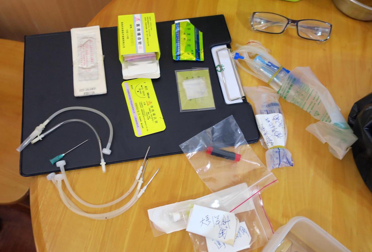 卫生局在现场检查时,未见医疗广告招牌亦未见医生用笺等,但现场发现听诊器、止血带、血压计、针筒、手术用刀片等医疗卫生护理用具,同时亦发现大量针头、生理盐水及使用过的药物,主要为抗生素、抗过敏药及止痛药等愈100项药物,部分药物亦已超过有效期;具体数量正在点算中,涉事人员承认有关药物由国内购买后自行带返澳门。同时,涉案住宅内有曾经使用过的注射药物及针具,现场证据显示有人曾在涉案的场所内进行医疗行为,因此,有理由相信场所进行非法行医行为。卫生监督已实时对有关物品进行扣押,并命令涉案人立即停止相关行为。