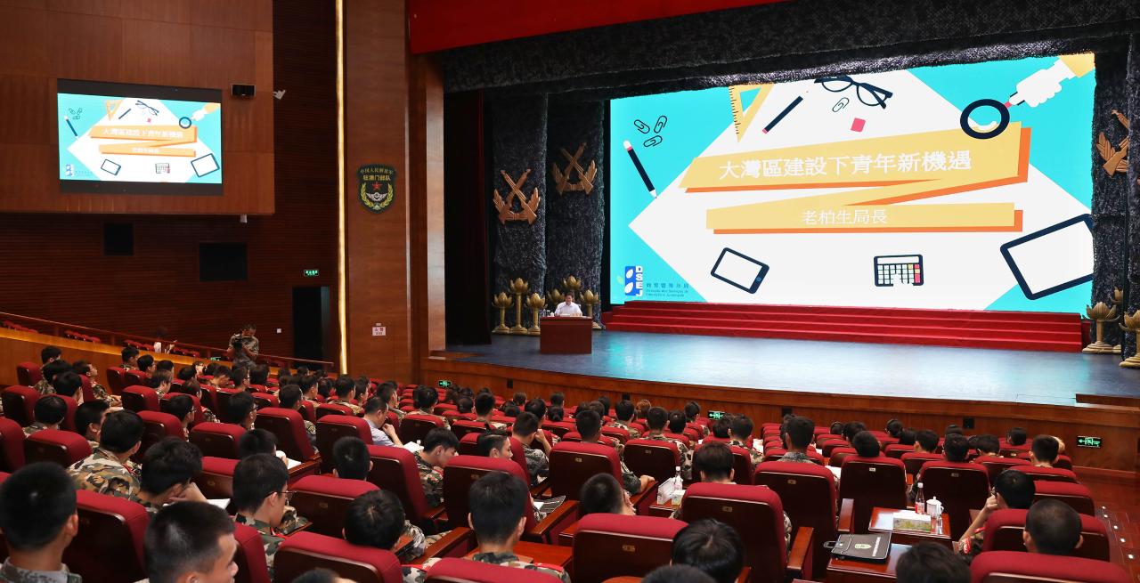 由澳门特别行政区政府与中国人民解放军驻澳门部队合办、教育暨青年局承办的第十四届“澳门青年学生军事夏令营”于7月20日至29日在驻澳部队氹仔军营举行。为让青年学生进一步了解国家与澳门发展的新趋势,为自身的生涯规划作好准备,教青局局长老柏生今日(24日)到驻澳部队氹仔军营,向130名受训青年学生授课,勉励青年放眼粤港澳大湾区,并鼓励他们参与其中。