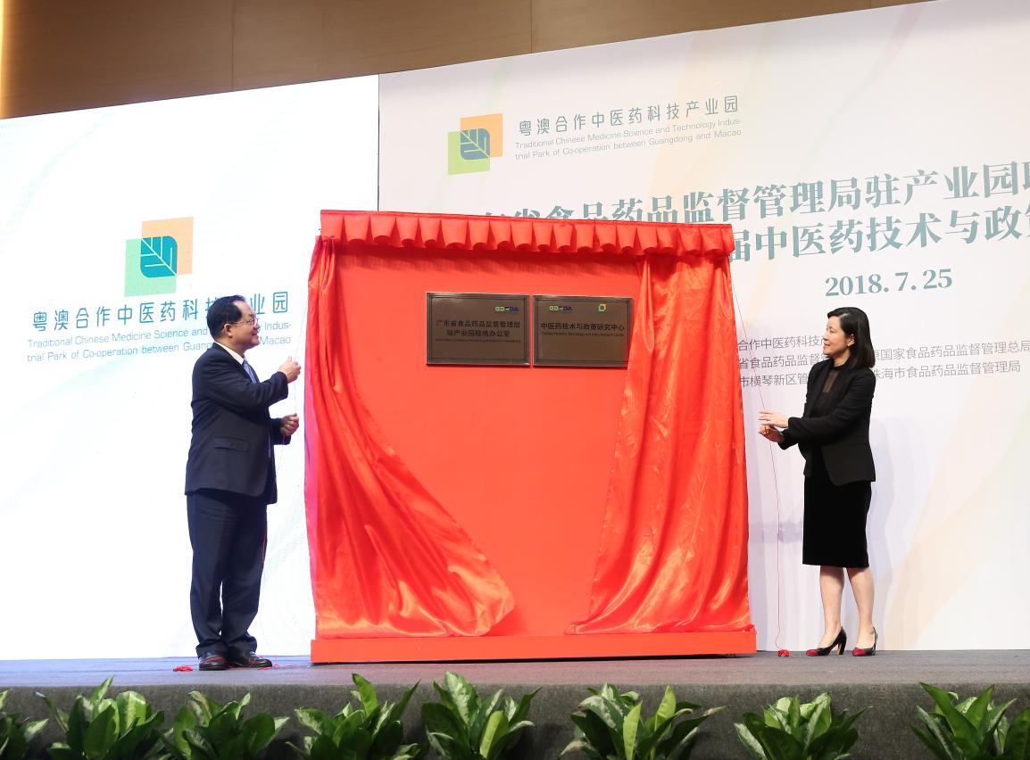 是次揭牌仪式,由广东省食品药品监督管理局局长骆文智,澳门特别行政区政府经济财政司司长办公室顾问、粤澳中医药科技产业园开发有限公司董事长吕红代表双方揭牌,并由澳门特别行政区政府经济财政司司长梁维特、珠海市副市长阎武、横琴新区党委书记牛敬、澳门特别行政区政府卫生局副局长郭昌宇、国家食品药品监督管理总局南方医药经济研究所副所长宗云岗一同见证。