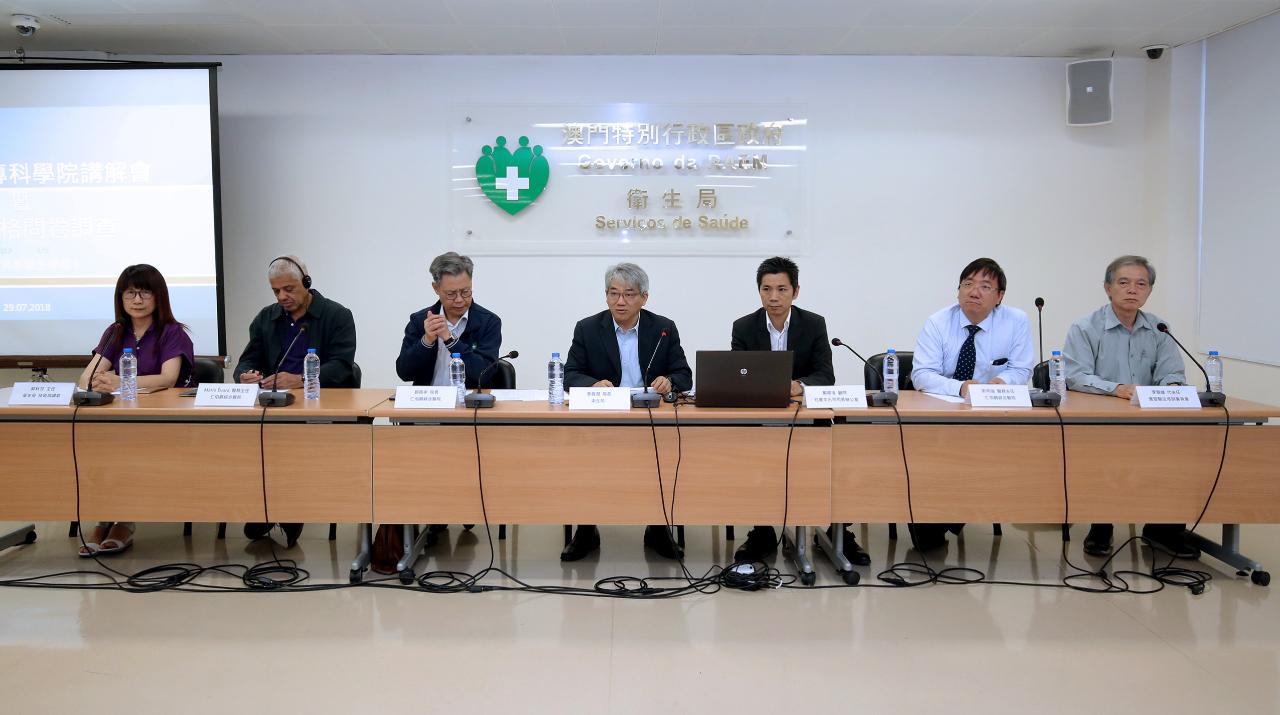 卫生局昨(7月29日)举行澳门医学专科学院讲解会暨专科资格问卷调查(私人执业医生专场)。座谈会由卫生局局长李展润主持,副局长兼仁伯爵综合医院院长郭昌宇、社会文化司司长办公室顾问戴华浩、仁伯爵综合医院医务主任马伟龙及彭向强、卫生局一般卫生护理副体系技术协调室主任郭秋莎、实习医生培训委员会代主任李楚峰列席会议。