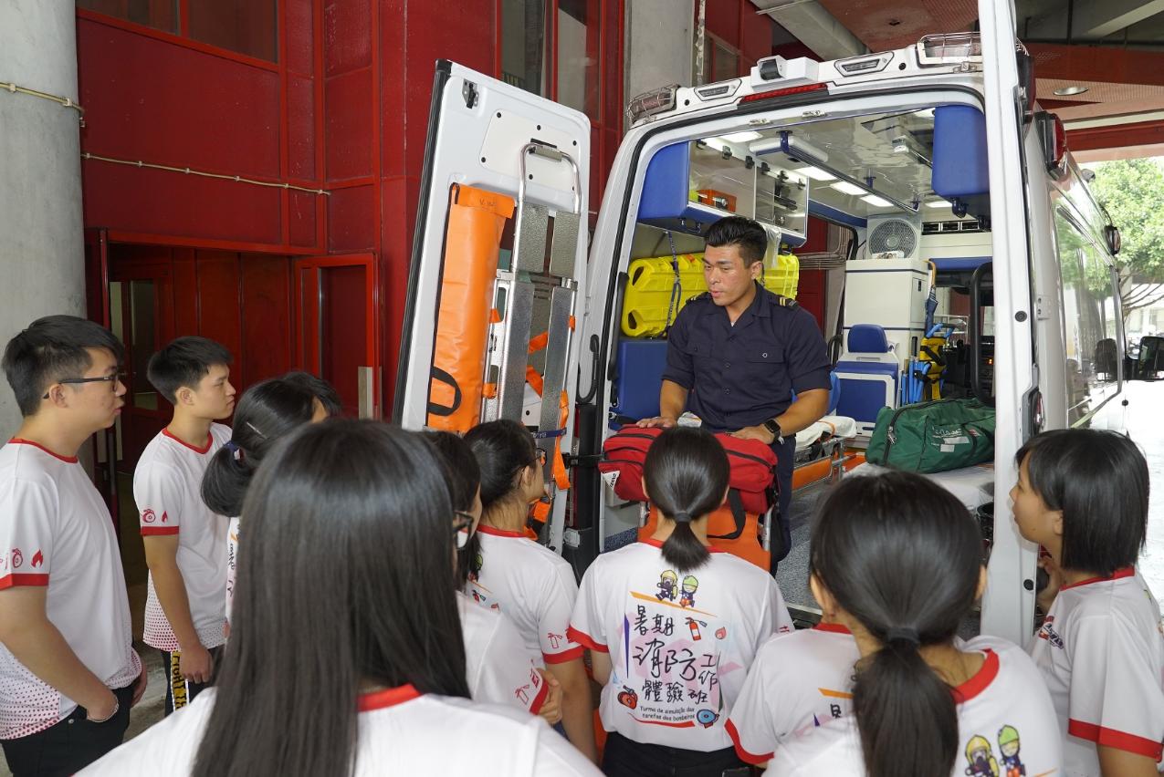 为期三天的体验活动中,让学员体验到消防员日常工作情况,学习基本灭火及救护知识、亲身接触各类消防专业拯救工具、学习使用灭火筒、穿着消防救火装备、云梯车乘坐体验、以及紧急车辆介绍等。另外,通过列队、消防喉操作等训练,令学员明白消防工作是讲求高度团队合作,从而启发学员的团队精神。
