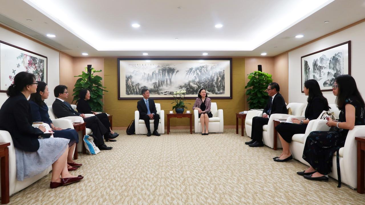 “渔山春色——吴历逝世三百周年书画特展”代表团一行由故宫博物院副院长朱鸿文、上海博物馆副馆长李仲谋带领,在澳门艺博馆馆长陈继春陪同下,于9月7日上午10时到访澳门基金会,获澳门基金会行政委员会代主席钟怡及教科文中心代处长郭韦琪接见。