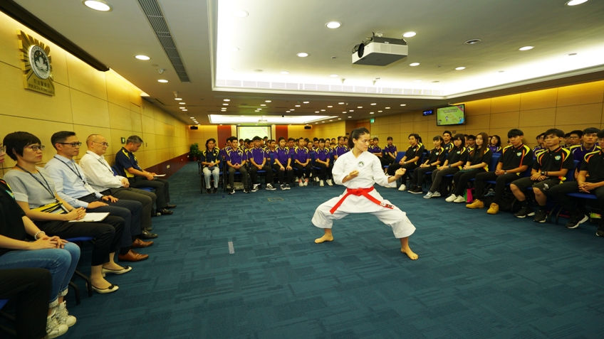 苏瑞林又即场示范是次亚运比赛中参赛的自选套路,“灭罪小先锋种子计划”及“社区安全青年领袖计划”学员们都感到十分好奇,纷纷向苏瑞林请教空手道套路起源、竞赛规则等,她都一一讲解。她又勉励学员们除了努力读书之外,亦要勤加锻炼身体,希望将来有更多的青少年运动员代表澳门特区,在国际体坛上发热发亮。