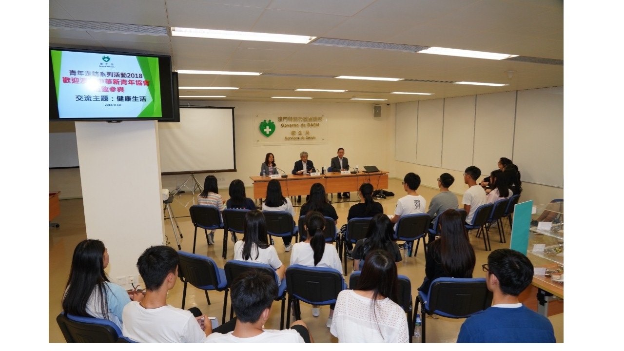 为促进青少年的健康和增进交流,卫生局于9月10日举办青少年健康生活交流会,由协办单位“澳门中华新青年协会”邀请近 35 名青年健康大使,与卫生局李展润局长、何钰珊副局长及疾病预防控制中心林松主任就健康生活作近距离交流。