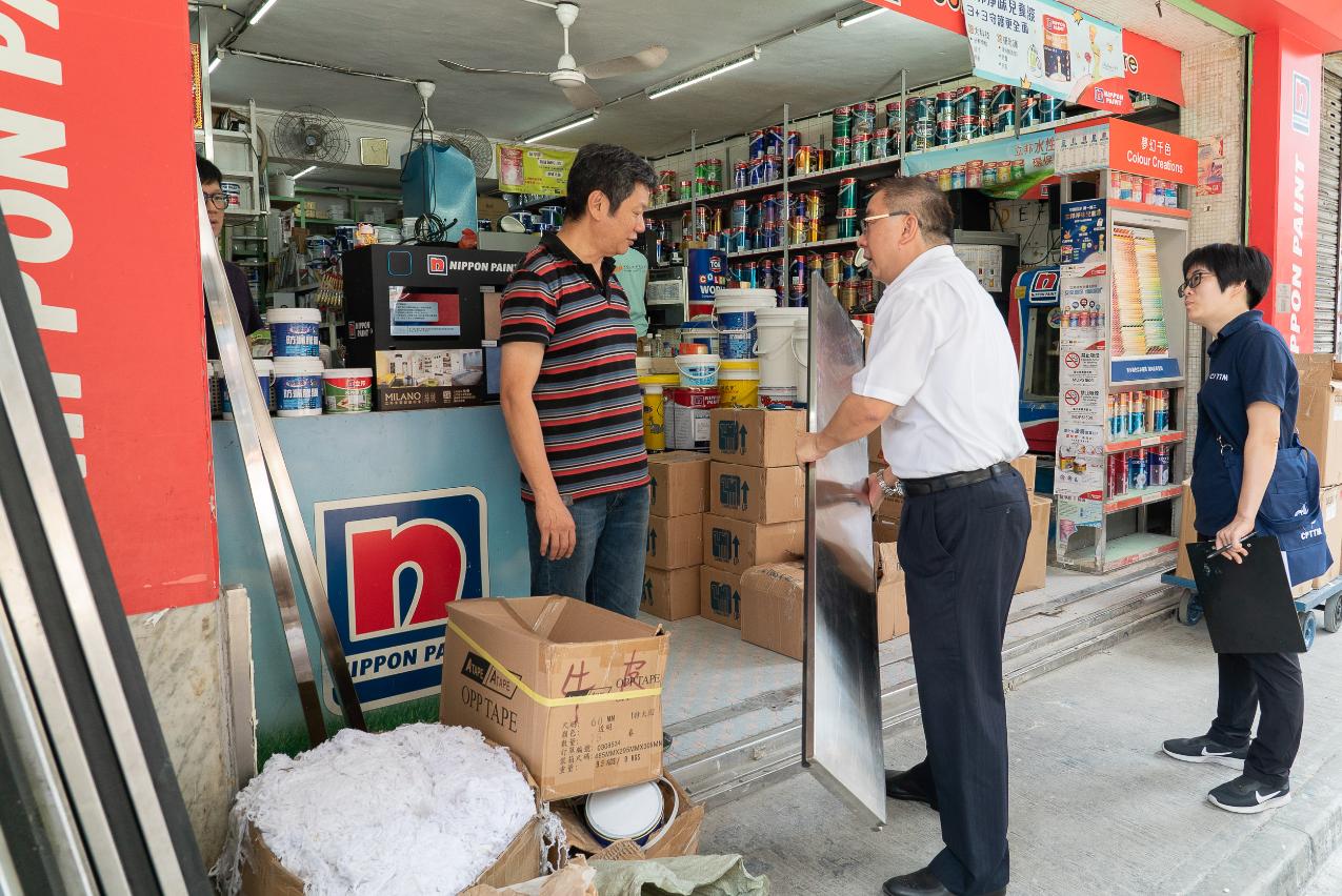 为应对台风“山竹”可能对商户造成的影响,经济局联同生产力暨科技转移中心人员今(14)日到下环、内港、新桥以及十月初五街一带巡视已安装防洪门的商户,确保防洪门在台风到来前安装妥当及使用状态良好。