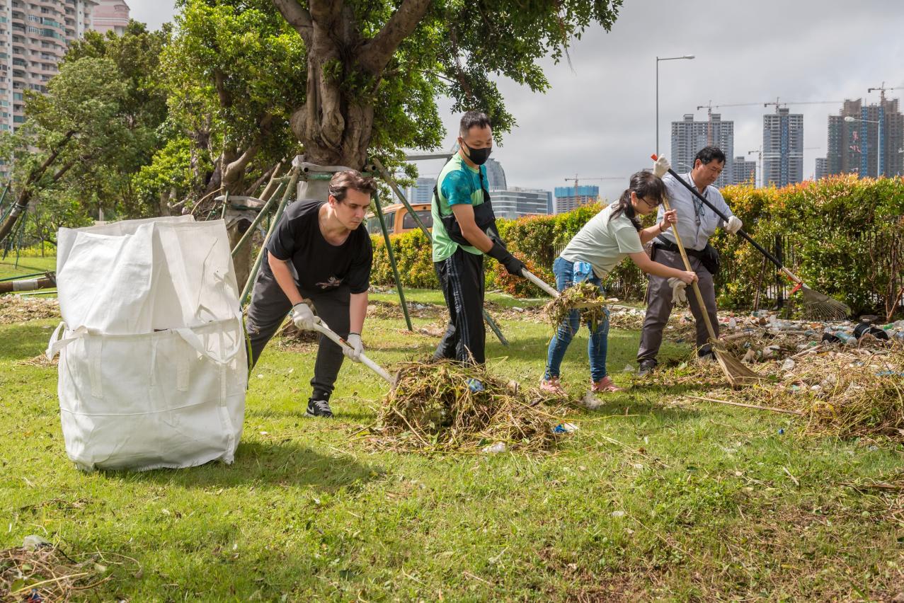 民署今日(九月十八日)继续协调民署人员、政府部门公务人员、团体及博企等组成约三百多人的义工队伍到各受水浸影响较严重的街区,以及到自行车径、公园及休憩区等绿化设施进行清理工作。连同昨日(九月十七日)组织了二千七百多名义工进行清理工作,民署人员义工亦在临时垃圾收集点支援站点工作,并向有需要的市民及商户派发胶袋。各界齐心合力,希望尽快恢复社区环境卫生,并让休憩设施得以重新开放。