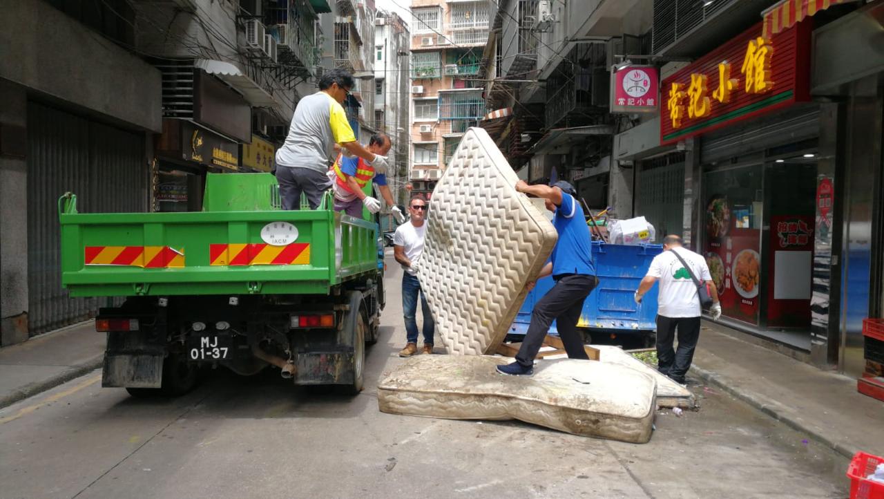 为提升善后工作的效率,民署已于各区设置五十个临时垃圾收集点,呼吁市民及商户积极配合,将垃圾用胶袋盛载并封口弃置,而受浸的食物存在食安风险,提醒市民不应捡拾,而弃置大件垃圾时须注意摆放位置,避免影响行人及交通安全,亦须将弃置的家具稳固摆放,以免造成意外。