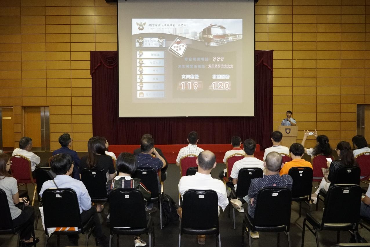 为此,于9月22日,消防局为澳门物业管理专业人员协会在消防局总部开办防火及救护知识培训课程,合共约34名物管业从业员参与,课程内容主要包括:介绍消防局的使命、信念及抱负、燃烧的理论、常见火警危机、正确及安全地使用燃气炉具、物管业从业员的日常消防安全责任、发生火警时的应变措施及逃生技巧;另外,还介绍了大厦消防设施设备、日常消防系统之养护方法、如何正确使用大厦的灭火设备扑灭火警、基础救护知识及灌输切勿滥用救护车等信息。冀通过课程令从业员学以致用,提高专业管理水平。