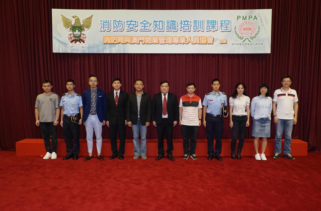 出席是次课程开幕仪式的主礼嘉宾包括消防局代副局长 区耀荣 消防总长、澳门物业管理专业人员协会会长 周嘉进先生等,并由消防局代副局长向参与课程的业界代表颁发证明书。最后,双方对有关课程的成效予以认同,并表示将继续举办同类型课程,以提升物管业从业员防火安全及基础救护知识,保障居民生命财产,营造大厦的良好安全环境。