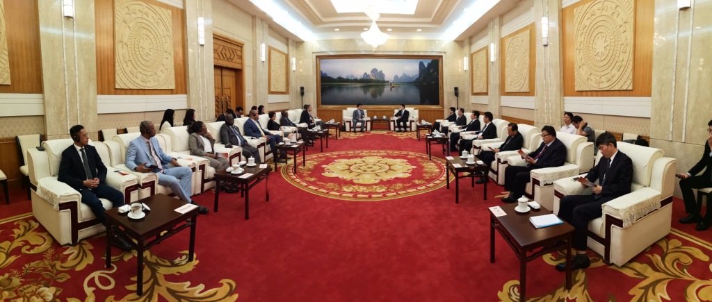 广西自治区人民政府杨斌副秘书长会见了代表团, 他表示广西是“一带一路”有机衔接的门户, 地处中国—东盟开放合作的前沿, 愿通过澳门平台加强与葡语国家的经贸合作, 进一步深化桂澳与葡语国家发展。在南宁期间, 常设秘书处参观了南宁·中关村创新示范基地以及西乡塘美丽南方现代农业等先进机构和创新基地, 使葡语国家代表更多瞭解南宁的发展优势。21日, 常设秘书处和广西港澳办联合举办了“广西-澳门-葡语国家产能合作对接会”, 来自铝业、水电、建筑、渔业、农业、科技、汽车、贸易、信息及旅游等50多位企业代表参加。会上, 广西发展改革委员会和商务厅的领导介绍了广西的投资环境及产能合作意愿, 丁恬副秘书长简介了中葡论坛和澳门平台, 并介绍产能合作的相关情况。丁恬表示常设秘书处与广西在经贸文化上已有交往, 秘书处曾访广西宣介葡语国家, 而广西右江民族歌舞团亦曾参加中葡论坛主办的“第九届中国-葡语国家文化周”演出, 展现了广西独特的民族风情。葡语国家派驻代表介绍了各自国家的投资项目和产能合作项目等情况。会后, 企业代表和葡语国家派驻代表就推动经贸交流与产能合作项目进行了热烈探讨。