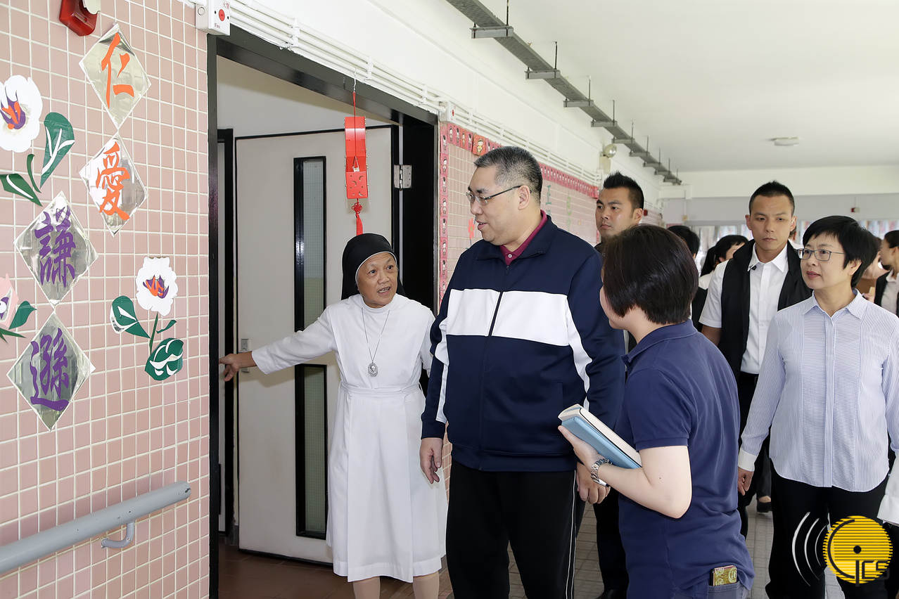 行政长官一行下午3时多抵达玛大肋纳安老院,与长者和家属们,以及院舍负责人亲切握手交谈和合照,听取院舍叶修女和同事们反映长者对相邻格力犬安置场所的意见和忧虑,主要是长者们担心噪音影响作息和环境卫生问题。修女们、长者和家属均欢迎行政长官来探望,感谢长官关心他们的诉求。