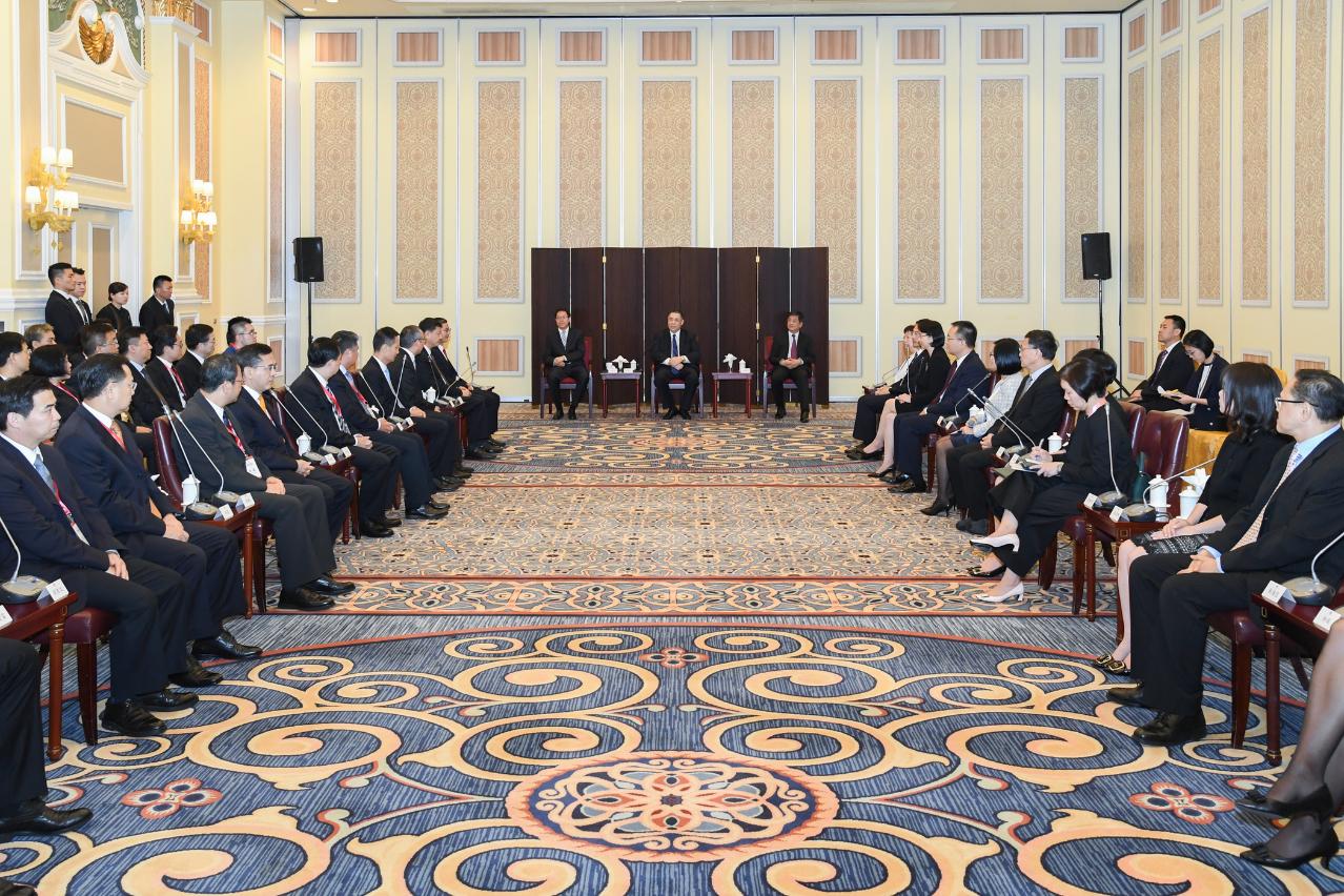 国务院港澳事务办公室主任张晓明、中央驻澳联络办公室主任郑晓松、外交部驻澳特派员公署特派员沈蓓莉、广东省副省长张光军,以及香港特别行政区、广州、深圳、珠海、佛山、惠州、东莞、中山、江门及肇庆的政府领导出席了会面。