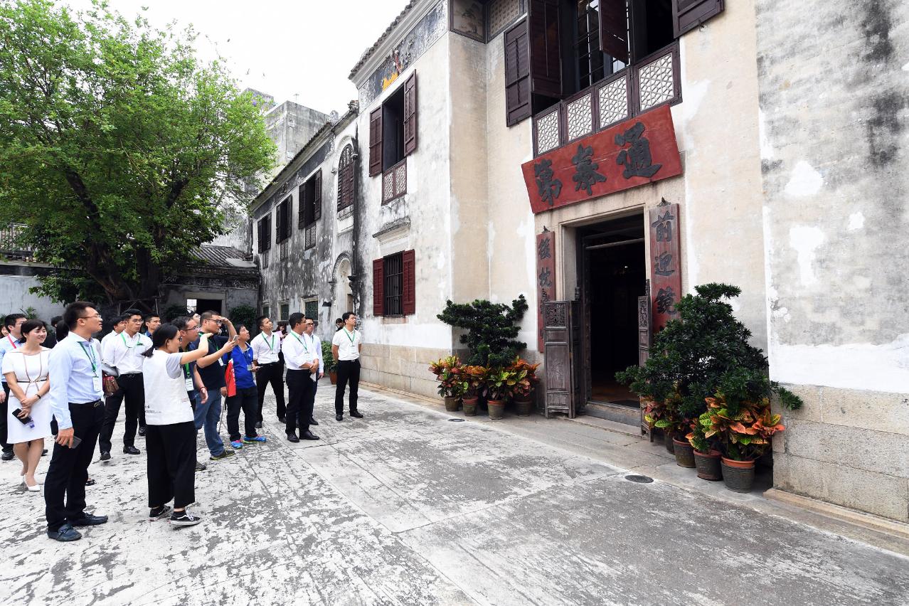 欢迎晚宴前,大湾区各市的青年代表下午在文化局人员陪同下,到大三巴牌坊、哪吒庙、大三巴哪吒展馆、阿婆井前地、郑家大屋、岗顶剧院、圣奥斯定教堂及何东图书馆等澳门历史城区景点参观考察,进行文化交流活动。