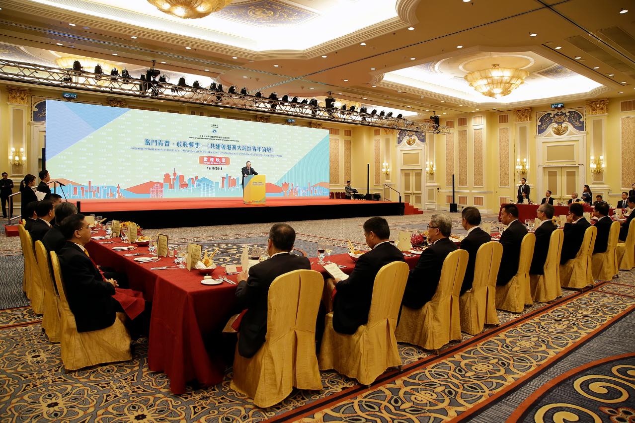 “奋斗青春、放飞梦想-共建粤港澳大湾区青年论坛”明(13)日开幕,特区政府今(12)晚设宴欢迎来澳参与论坛活动的嘉宾及大湾区各兄弟城市的政府领导和青年代表。行政长官崔世安表示,希望藉着此次青年论坛的举办,促进大湾区各地的朋友们与澳门各界,特别是澳门青年增进交流、促进合作、共商发展,共同为推动粤港澳大湾区建设贡献力量。