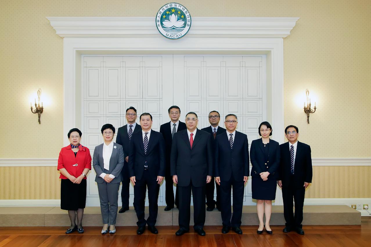 行政长官办公室主任柯岚、政策研究和区域发展局局长米健;以及澳门公务专业人员协会监事长尤淑瑞、会员大会副主席尤肖其、副理事长林英杰等参加了会面。