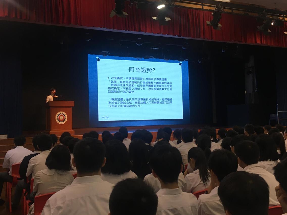 为加强教学人员和学生对有关职业及专业证照考试的认识,鼓励学校协助学生考取各类职业及专业证照资格,教育暨青年局与澳门生产力暨科技转移中心合作,以巡回讲座方式,于9月至10月上旬到校为学生开展 “激活‘证’能量―职业及专业证照讲座”。